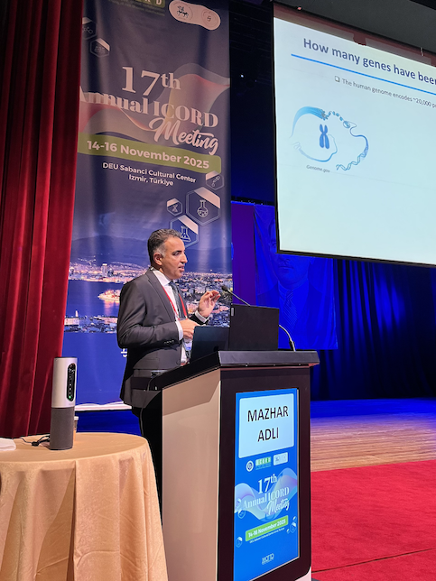 The first day opened with a strong scientific program. Dr. Mazhar Adli (Northwestern University, USA) presented his team’s work on functional characterization of human genes using CRISPR and degron technologies, while Dr. Khalid Fakhro (Sidra Medicine, Qatar) highlighted rare disease gene discovery and population genomics shaping precision medicine in the Arab region. Joining online, Dr. Zeynep Tümer (Copenhagen University Hospital) shared her group’s efforts in sustainable genomics and DNA methylation profiling. The second session continued with newborn genomic sequencing approaches presented by Dr. Ahmad Abou Tayoun (Al Jalila Children’s Specialty Hospital, UAE), global updates in neonatal screening from Dr. Peter Schielen (ISNS), and a powerful “One Health” perspective from Dr. Alberto Mantovani (ISS, Italy). Afternoon sessions featured talks by Dr. Tolga Aslan (Genomize) on clinical bioinformatics challenges, followed by an entire block dedicated to gene therapy approaches—ranging from clinical-phase AAV vectors to emerging strategies for metabolic and neurogenetic diseases.