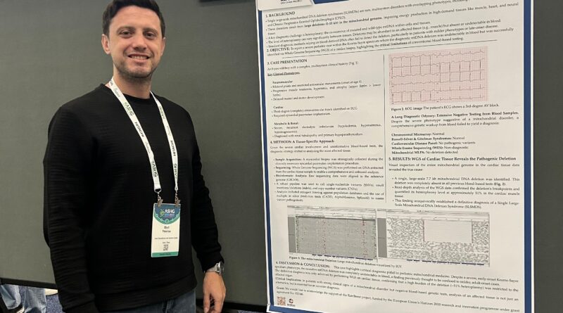 Dr. Pekerbaş made an active scientific contribution by presenting a poster titled “Whole Genome Sequencing of Cardiac Biopsy Reveals a Single Large-Scale Mitochondrial DNA Deletion Missed in Blood Testing.” The presentation described a unique patient case diagnosed using whole genome analysis, representing a patient type not previously reported in the literature.