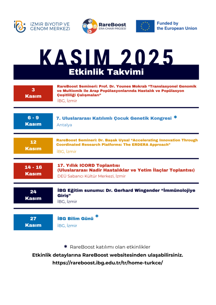 RareBoost, İzmir Biyotıp ve Genom Merkezi (İBG)’nin yürüttüğü Horizon 2020 ERA Chair programı tarafından finanse edilen bir projedir.