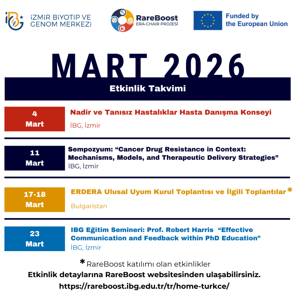 RareBoost ERA Chair projesinin temel amacı, İBG’yi nadir hastalıklar araştırma ve inovasyon alanında uluslararası bir mükemmellik merkezi haline getirmektir.