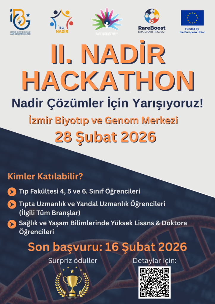 Bazı nadir hastalıklar, standart medikal değerlendirmelerle tanı alamamaktadır ve bu durum hastaların uzun süre tanısız kalmasına neden olmaktadır. Günümüzde gelişmiş tanısal yöntemler ve ileri genetik incelemeler sayesinde, uzun süre tanısız kalan hastaların pek çoğuna tanı konulabilmektedir. Nadir hastalıkların daha iyi tanınması, tanı sürecinin daha iyi anlaşılması ve tanısal yaklaşım becerilerinin geliştirilmesi amacıyla, 28 Şubat Cumartesi Nadir Hastalıklar Günü’nde İzmir Biyotıp ve Genom Merkezi’nde Nadir Hackathon yarışması düzenlenecektir. RareBoost ERA-Chair projesi tarafından organize edilen bu yarışma ile genç bilim insanlarının nadir hastalıklar konusunda farkındalık kazanmaları amaçlanmaktadır.